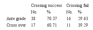 The overall crossing success rate is higher in the antegrade femoral access 38 patients (70.37%) than cross over femoral access 17 patients (60.71%).