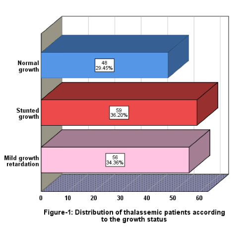 Conclusion: In BTM patients, the overall incidence of GF (both mild and severe form) was more than 70%. The mean serum ferritin levels correlated significantly with the growth retardation of BTM patients.