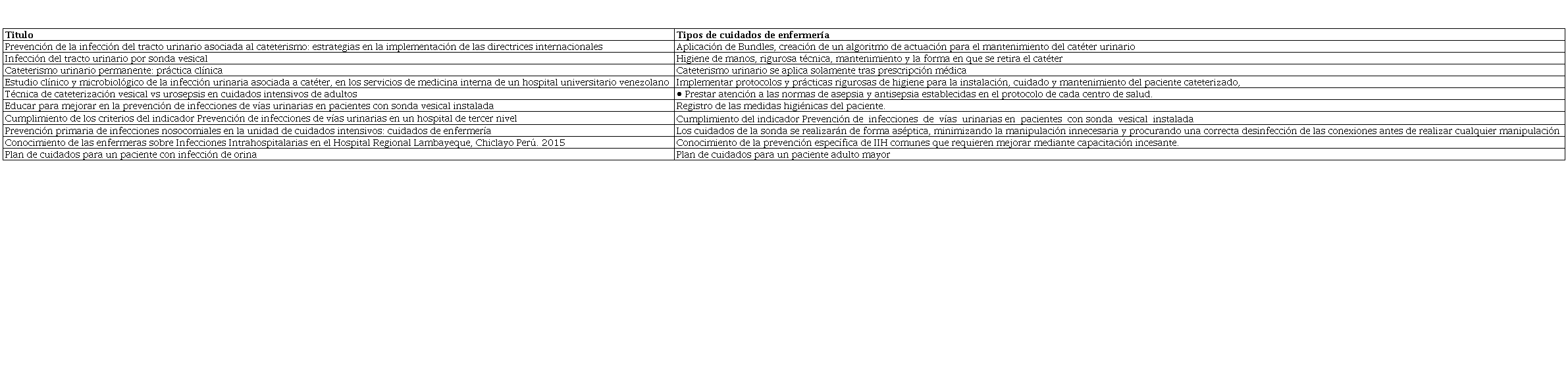 Las diferentes publicaciones revisadas mencionan los efectos que produce la aplicación de cuidados de enfermería centrados en la prevención de infección de vías urinarias en la disminución de complicaciones.
