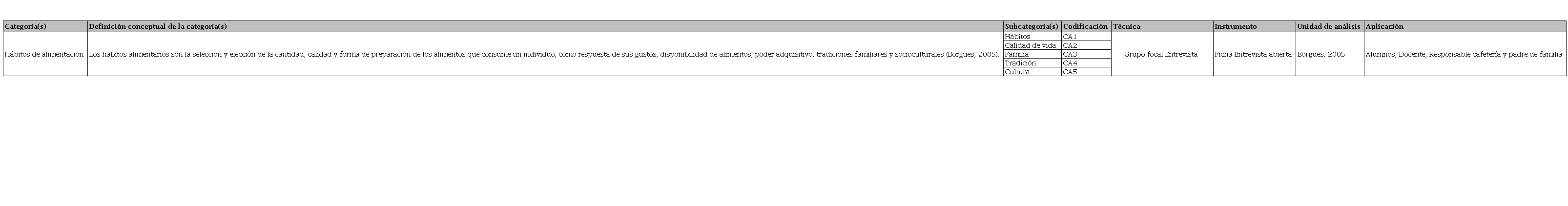 Matriz de categorización.