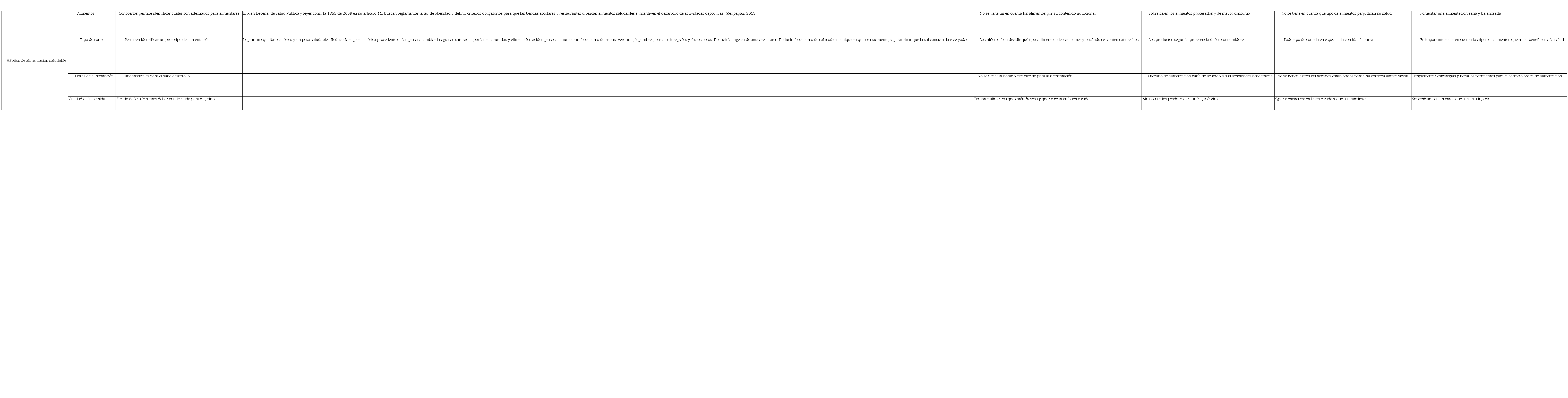 Abstract: Within the legal framework of UNICEF, the Organic Law for the Protection of Children and Adolescents refers to their rights in aspects of information, health care and nutrition. The formation of eating habits and healthy lifestyles make up a priority area. The article aims to analyze eating habits in students through a focus group and through interviews with parents, administrators and managers, from a qualitative approach. The analysis was performed in Excel and Atlas-Ti, from the categorization matrix and also the triangulation matrix of the information collected. It is concluded that it is essential to propose and guide adequate food from childhood to prevent diseases, eating disorders, malnutrition, overweight and even death, and it is the responsibility of the family and institution to ensure and guarantee these conditions.