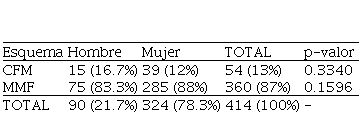 Tal y como se observa en la Tabla 2, el 87% de los pacientes fueron tratados con MMF con la finalidad de Inducir a la remisión. Sin embargo, una prueba de independencia de χ² mostró que no había una asociación significativa entre el sexo y el esquema de tratamiento para inducción (χ²: 0.0043, p = 0,947).