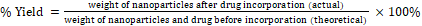 Calculations of % yield, % entrapment efficiency, and % drug loading