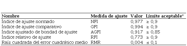 Según los indicadores de ajuste, se puede decir que el modelo estructural estimado es aceptable ya que cumple cuatro de los indicadores de ajuste. Índice de ajuste normado 0,977 Índice de ajuste comparativo 0,994, Índice ajustado de bondad de ajuste 0,917, Raíz cuadrada del error cuadrático medio 0,004. Por lo antes mencionado podemos referir que el modelo es aceptable que se explicará líneas abajo.