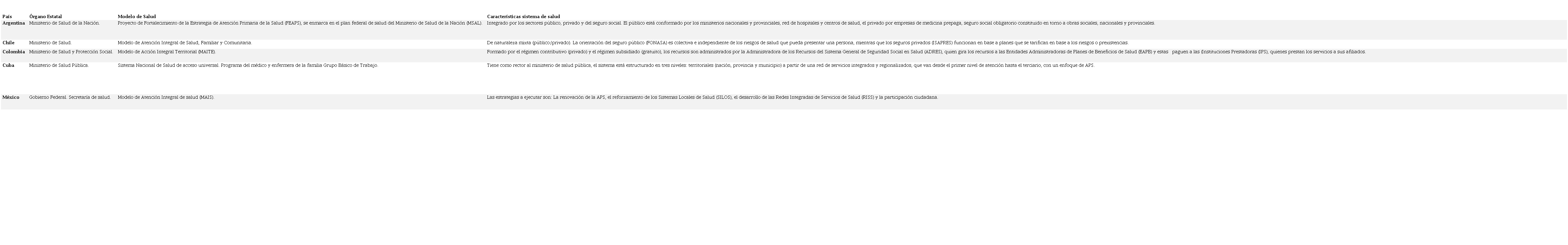 A continuación, se agrupan los resultados por países, Características de los sistemas de salud, aproximaciones relacionadas con estrategias de APS y principales limitaciones a superar.