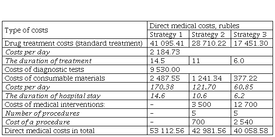 - in case of the standard treatment (Strategy 1) – 53 112.56 rubles.