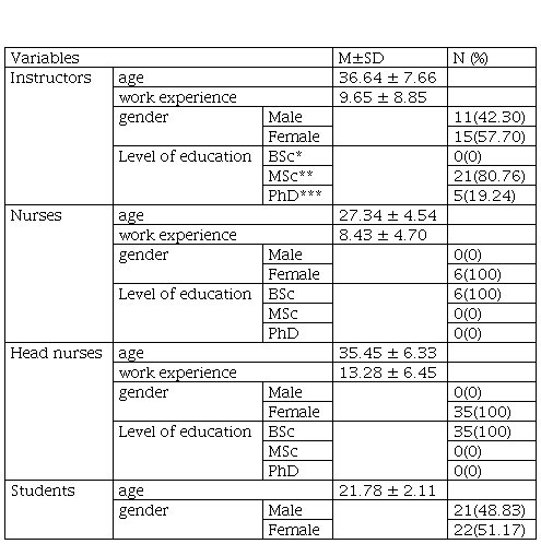 A qualitative design with a conventional content analysis approach was used to collect data and analyze the status of clinical nursing education of Iranian instructors, students, nurses, and head nurses in X University of Medical Sciences (2018-2019).