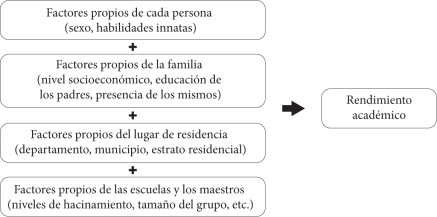 Es por ello por lo que Giraldo y col.6, exponen que forma parte de los desafíos de la universidad colombiana, la mejora continua de los procesos desde el desempeño académico, el desempeño financiero, el desempeño administrativo y el desempeño social. En efecto, autores como Teddlie y Stringfield7 y McIlrath y Huitt8, manifiestan que el nivel de calidad de la IES se refleja en el nivel escolar, medido como desempeño académico, e involucrado con determinantes como los profesores de calidad, y la calidad de los elementos del proceso de enseñanza y aprendizaje. Rodríguez y col.9, definen el rendimiento académico como la valoración cuantitativa y cualitativa del logro de competencia alcanzada por el estudiante en dicho proceso. No obstante, lograr elevar el desempeño académico del estudiante, no es sólo una meta institucional, y dicho rendimiento es influido por determinantes intrínsecos y extrínsecos del estudiante como persona.
