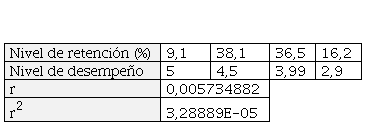 Se encontró que, en el caso del nivel de atención, nivel de interpretación y nivel de retención, existe una correlación positiva, aunque baja, mientras que, en el nivel de relacionamiento, existe una correlación negativa. En todos los casos, el nivel de variabilidad en la relación de las variables es bajo. Con esto se concluye que los factores cognitivos no son determinantes clave del nivel de desempeño académico en el presente estudio. Al respecto, fue la relación de variables más determinante, encontrándose una correlación casi perfecta, y un coeficiente de determinación que explica que la variabilidad de una variable, es determinante en el comportamiento de la otra variable. Este resultado llama la atención, como bien lo expusieran Díaz y col.17, en torno a la importancia de los factores psicológicos en el rendimiento.