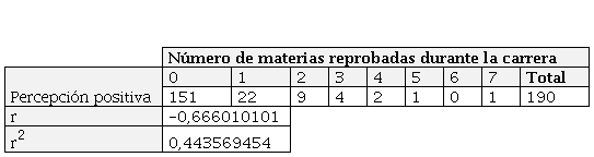 Tabla 3: Comparación de número de materias reprobadas con percepción positiva de apoyo familiar