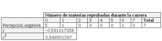 Tabla 4: Comparación de número de materias reprobadas con percepción negativa de apoyo familiar