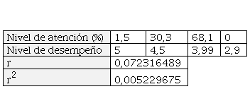 Tabla 6: Comparación entre el nivel de desempeño académico y la variable cognitiva: nivel de atención