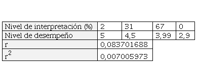 Tabla 7: Comparación entre el nivel de desempeño académico y la variable cognitiva: nivel de interpretación