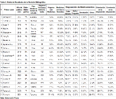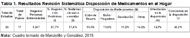 En una revisión sistemática publicada en la Gaceta Médica de Caracas2 en la que se investigó el manejo y la forma de disposición de medicamentos por pacientes o consumidores en su hogar, se obtuvieron los siguientes resultados (Tabla 1):