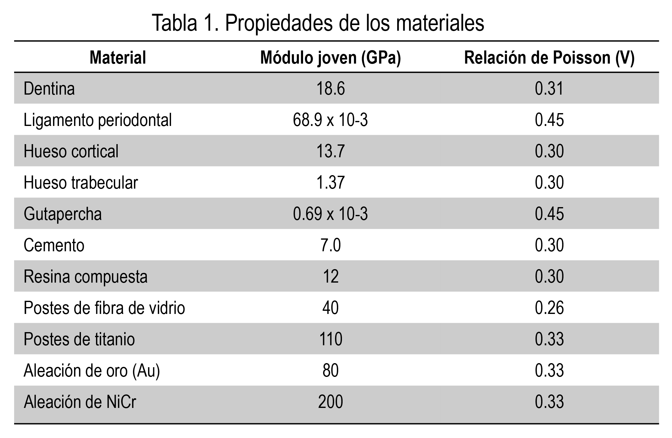 Inicialmente estos postes intraradiculares eran metálicos, generalmente de aleación de níquel y cromo (NiCr), sin embargo, estos presentan una elevada rigidez lo cual ocasiona la posibilidad de fracturas longitudinales de la raíz o corrosión del metal, resultando en la pérdida de la pieza dental3, circunstancia que originó la búsqueda de un material con un módulo de elasticidad más cercano al de la dentina, tal como la fibra de vidrio y otras aleaciones de metal noble (Au) de tipo III o IV, mezclando oro 24 quilates con paladio, que ha presentado un mejor desempeño clínico, con un módulo de elasticidad más elevado, además de presentar propiedades como alta durabilidad, alta resistencia mecánica y térmica, excelente ajuste, fácil soldadura y acabado y biocompatibilidad4, considerando que la diferencia entre el módulo de elasticidad de los materiales dentales y el de la dentina dental es un factor importante en la transferencia de fuerzas funcionales5.