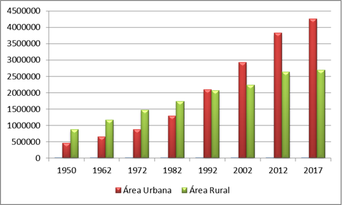 En casi 7 décadas la población urbana paraguaya creció 9 veces, de menos de 460 mil personas, en 1950, a más de 4 millones 264 mil habitantes en el 2017. La población rural del Paraguay, que representaba en el año 1950 el 65,4% del conjunto total de habitantes, disminuyó al 38,7% en el 2017. Mientras tanto, la población urbana saltó del 34,6%, en 1950, al 61,3% en el 2017.
