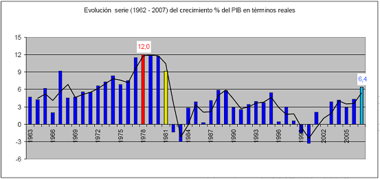 En la década de 1970, la economía paraguaya se dinamizó como producto de la construcción de la que fue considerada hasta hace poco la represa hidroeléctrica más grande del mundo, Itaipu, emprendimiento acordado entre Paraguay y Brasil[5]. Igualmente, las leyes de fomento a las inversiones, beneficioso para el capital extranjero, influyeron en el crecimiento económico de los años setenta, tiempo en que se observó además la expansión del sector de la construcción y la consecuente ampliación del mercado de trabajo urbano que absorbió la mano de obra que la agricultura familiar dejó disponible (Morínigo, 1991).