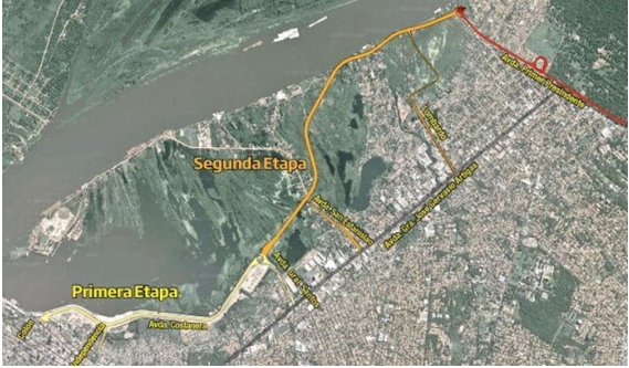 En el 2017 se puso en marcha la construcción de la segunda etapa de la Avenida Costanera, en la zona conocida como Bañado Norte. La obra, que tendrá al finalizar poco más de 15 kilómetros de extensión[8], forma parte de un emprendimiento mayor que intervendrá en el centro histórico de la ciudad de Asunción, contemplándose además el mejoramiento de edificios públicos y monumentos como asimismo la reconversión de la zona portuaria de la capital (Pinyol y Bogarín, 2016). La Avenida Costanera Norte, según el Fondo para la Convergencia Estructural del Mercosur (FOCEM), el mayor aportante de los fondos, tendrá un costo superior a los 116 millones de dólares.