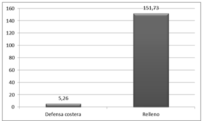 El costo de implementar el proyecto bañadense de defensa costera es de 5 millones 260 mil dólares americanos, mientras el relleno de los terrenos ribereños asciende, según los cálculos del estudio realizado por encargo de COBAÑADOS, a un total de 151 millones de dólares americanos, casi 30 veces más caro que la propuesta de los pobladores de los Bañados.