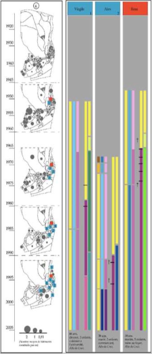 El recurso a la observación retrospectiva, dinámica y cruzada de los lugares e individuos refleja lo que J. Lévy expresa cuando escribe que «el lugar de vivienda es el resultado de una elección espacial permanente» (1988: 14). Ésta ofrece una oportunidad adicional para reubicar al habitante, ya sea móvil o sedentario, en un rol de actor, de acuerdo a las transiciones contextuales, integrando los efectos de ciertas restricciones estructurales. Por consiguiente, comprendiendo las lógicas de instalación y asentamiento a lo largo del tiempo y de acuerdo a las características evolutivas del contexto urbano, observamos con una mirada renovada las presencias residenciales de habitantes observadas al momento del estudio.
