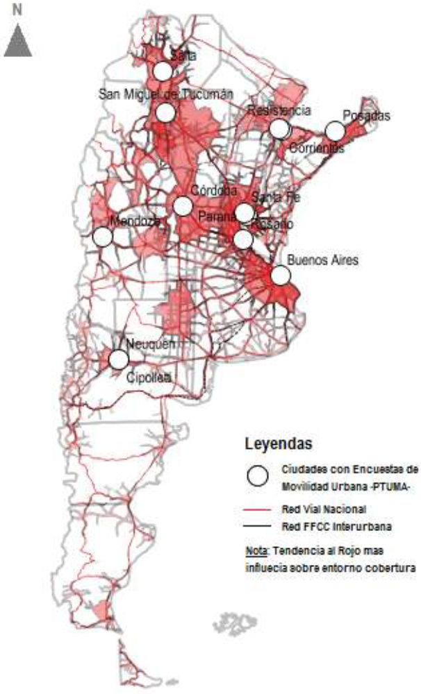 Como estrategia metodológica para el trabajo se propuso la explotación de datos de movilidad urbana de las principales ciudades de Argentina, para ello se relevaron las encuestas realizadas por el Proyecto de Transporte Urbano para Áreas Metropolitanas (PTUMA). El PTUMA es un proyecto dependiente de la Unidad Ejecutora Central, Ministerio de Transporte, con financiamiento externo otorgado por el Banco Internacional de Reconstrucción y Fomento (BIRF) junto con recursos del Tesoro Nacional. El PTUMA se convirtió en una iniciativa del Gobierno Nacional para brindar apoyo técnico y financiero directo para que las áreas metropolitanas del interior desarrollen e inviertan en políticas de movilidad. Los objetivos generales del Proyecto son el mejoramiento de la calidad y sostenibilidad de los sistemas de transporte urbano en áreas metropolitanas argentinas, mediante la mejora de los marcos sectoriales de toma de decisiones y el otorgamiento de prioridad a las modalidades de transporte público. El apoyo se materializa a través de asistencia técnica, desarrollo de herramientas de planificación, financiamiento de infraestructura de transporte y de otros tipos de cooperación que ayudan a fortalecer las instituciones y equipos de trabajo de las áreas metropolitanas.