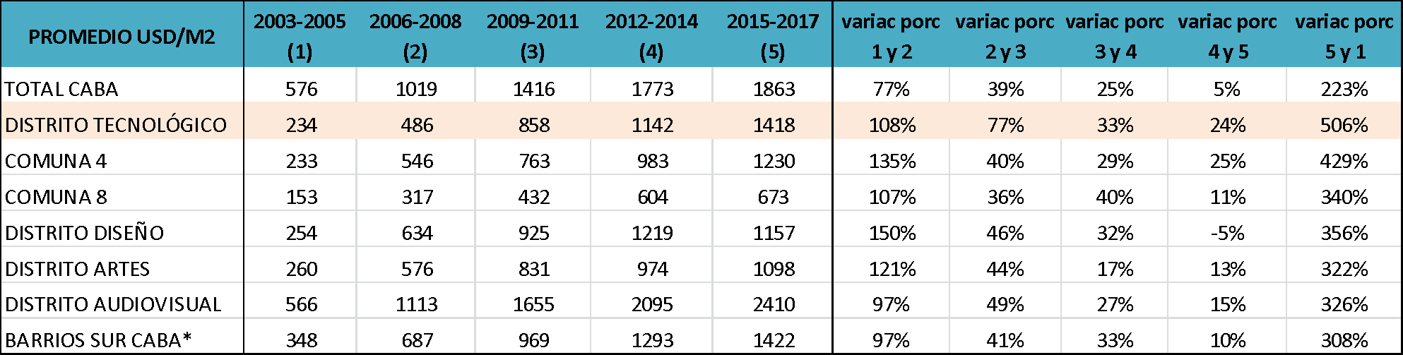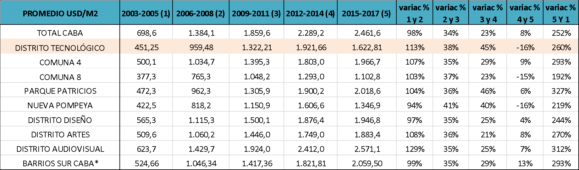 Dinámica del mercado inmobiliario en el sur de la Ciudad y el Distrito Tecnológico. 2003-2017
