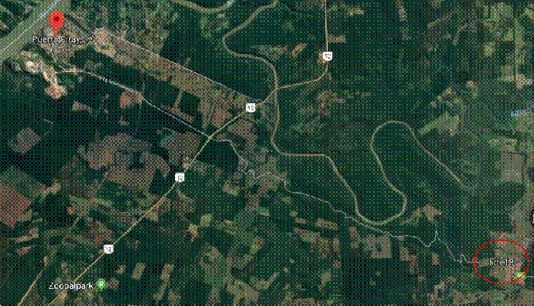 Piray km 18 es una colonia rural ubicada en el municipio de Puerto Piray distante a 18 kilómetros del pueblo del mismo nombre. La siguiente imagen satelital permite dimensionar la distancia geográfica entre el pueblo y la colonia.