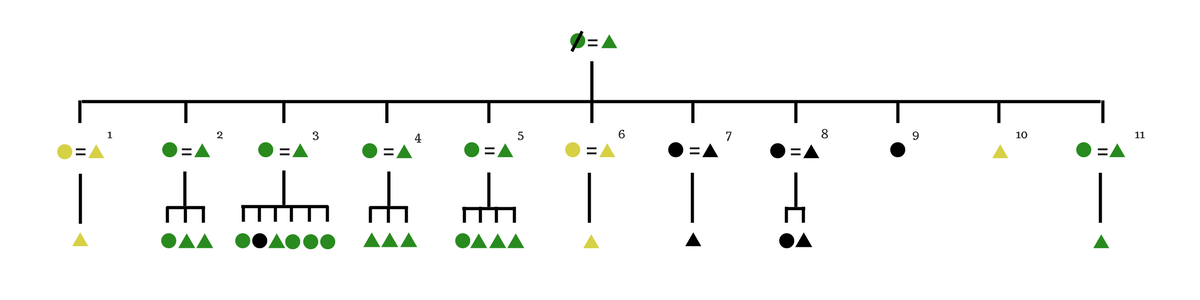 Figura 1. Diagrama de parentesco de la familia de Simona y Celestino (Barrio Unión. Piray km 18).