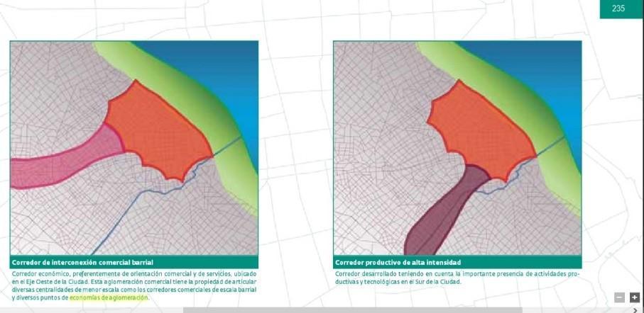 Luego, en el mismo capítulo pero en lo tocante al ítem Producción y Empleo, el sub indicador Diversidad y Equidad, establece una asociación directa entre la diversidad/especialización de actividades, rubros, ramas económicas en zonas de la ciudad con los criterios sustentables de crecimiento tanto a escala barrial como general para la ciudad en su conjunto. Si se observa el texto del MT, se encontrarán ejemplos concretos (de barrios y su relación con economías de especialización), aunque ninguno de ellos se refiere especialmente al sur de la ciudad, o bien, al área que nos ocupa en relación a la Ley.[9]