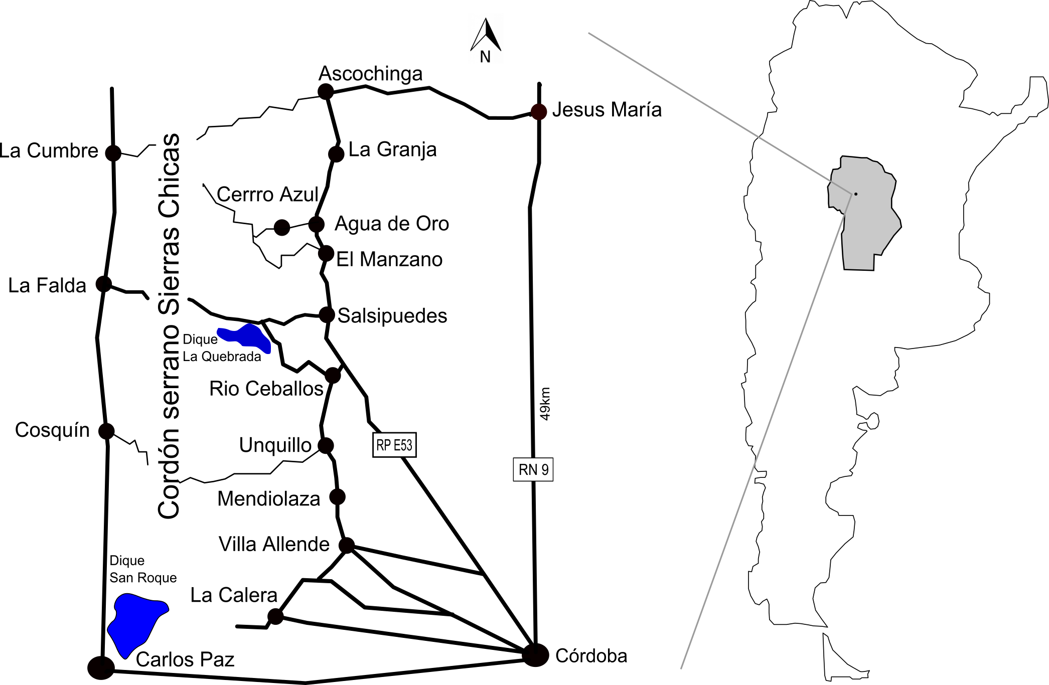 Entre los años 2007 y 2015, las localidades de la zona conocida como “Sierras Chicas”, en la Provincia de Córdoba, Argentina (ver Figura 1), se enfrentaron a una sostenida y grave escasez de agua que impactó en la vida social, económica y política. Si bien esta escasez se manifestó de diferentes maneras en cada localidad, la región en su totalidad sufrió lo que fue llamado una crisis hídrica[1] que fue objeto de preocupaciones públicas durante todo el período mencionado. En el año 2009, por ejemplo, la localidad de Salsipuedes fue noticia en los medios de comunicación más importantes del país. Una nota del diario Clarín, diario de mayor circulación nacional, informaba que los camiones cisterna con los cuales se repartía agua en los domicilios, tuvieron que ser custodiados por la policía “para evitar disturbios”[2]. En Agua de Oro, un conflicto entre vecinos agrupados y un emprendimiento inmobiliario que hubiera afectado la provisión de agua de la localidad, transcurrió durante todo el período de crisis llegando a instancias judiciales (véase Deon, 2015; Koberwein, 2015). Durante este período también —y este es el tema de este artículo—, las localidades de La Granja y La Cumbre entraron en conflicto por el uso del agua de un arroyo.
