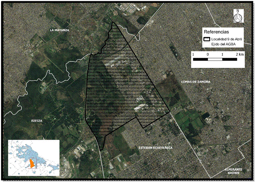 En la localidad de 9 de Abril del MEE, el registro de los asentamientos sobre áreas inundables se inició en el año 1981 cuando comenzaron a desplegarse las políticas de erradicación de villas de la Capital Federal por la última dictadura cívica-militar, modificando el perfil que había tenido hasta ese momento, predominantemente industrial intercalado con barrios obreros. Desde esa fecha hasta la actualidad, constantemente fue creciendo tanto la cantidad de los asentamientos mediante la modalidad de tomas u ocupación de terrenos, como así también de sus habitantes que pasaron de ser 3.006 en 1981 a 5.340 en 2006 (Cravino, et al. 2008). Para el año 2015, se contabilizaron 22 asentamientos y 8 villas en este municipio (Observatorio del Conurbano, 2019). El emplazamiento de dichos asentamientos en la localidad de 9 de Abril respondió a la disponibilidad de tierras vacantes que no habían sido urbanizadas dado su bajo valor de renta conferido por su condición de anegabilidad. También, por su proximidad a importantes centros productivos y de consumo como el Mercado Central de Buenos Aires y la feria La Salada, ambos interconectados mediante la autopista Tte. Gral. Pablo Ricchieri.