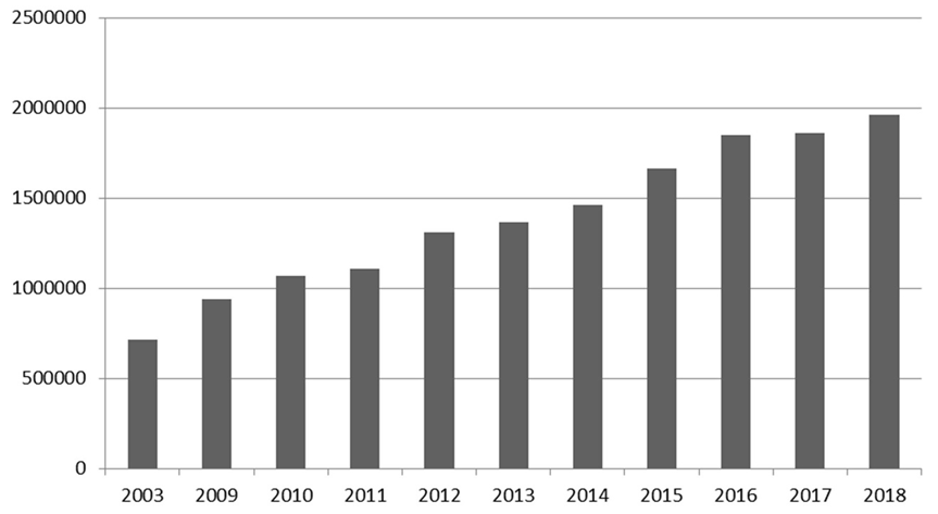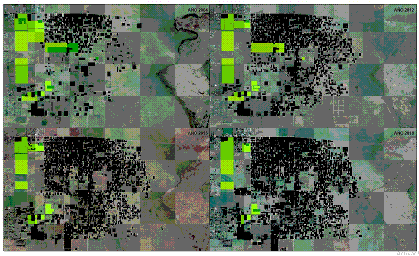 Respecto de la mancha urbana en el año 2003 la misma se incrementó un 31% en 2009, un 49% en 2010, un 55% en 2011, un 83% en 2012, un 90% en 2013, un 104% en 2014, un 132% en 2015, un 157% en 2016, un 159 en 2017, y un 173% en 2018. Es decir que los años claves en su evolución son 2012, 2015 y en menor medida 2016 (Figuras 8 y 9).