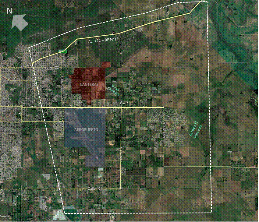 En el sector se verifica una gran mixtura de usos de suelo detectándose tanto actividades residenciales de distinto tipo, como también agrícolas, grandes áreas vacantes, grandes zonas de canteras, y usos específicos como el aeropuerto provincial (Figura 3). Entre las zonas residenciales pueden diferenciarse mayores densidades hacia las cercanías del casco de la ciudad de La Plata, incluyendo vivienda social colectiva de alta densidad. Alejándose del centro de la ciudad existen zonas de expansión reciente donde la segunda residencia fue reemplazada por vivienda única de sectores medios y bajos.