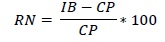 ![]() | RN: rentabilidad neta; IB: ingreso bruto; Cd: costos de producción. |