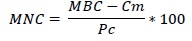 ![]() | MNC: margen neto de comercialización; MBC: margen bruto de comercialización; Cm: costos de mercadeo; Pc: precio del consumidor. |