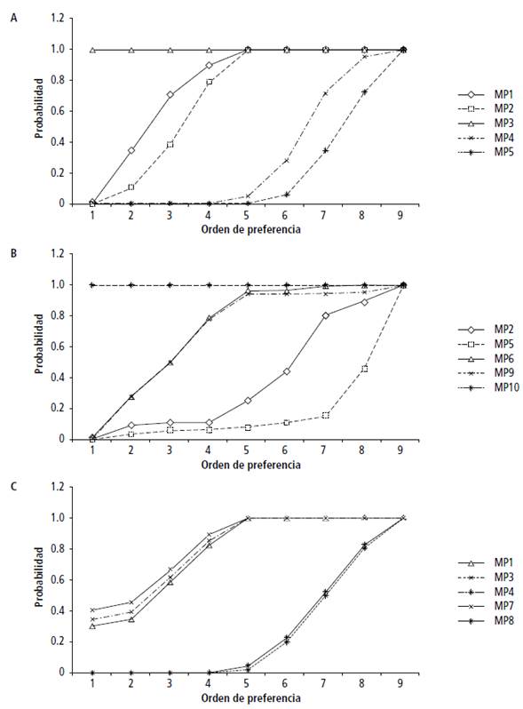 Con el objeto de determinar las características más sobresalientes asociadas a cada MP, se analizaron componentes principales que permitieron relacionar el orden de preferencia con las tecnologías que lo integran (Figura 2).