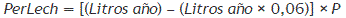 El cálculo de las perdidas en leche por efecto de las enfermedades se puede formalizar así: