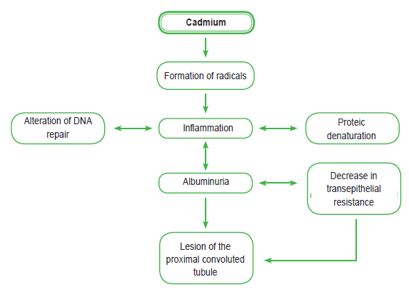 In order to evaluate the role of these contaminants in kidney disease, it was carried out an analysis based on studies on the pathophysiology, mechanisms of kidney damage and works in humans and animals. All of them, associated with the exposure to these heavy metals.