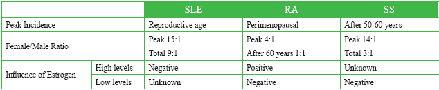 Autoimmune diseases such as SLE, RA, and SS preferentially affect women and are characterized by systemic inflammation leading to target organ dysfunction, including kidneys. Sex differences in the incidence and severity of these diseases result from a complex interaction of hormonal, genetic, and epigenetic factors (Table 2). The public health burden of autoimmune diseases, which collectively represent a leading cause of morbidity and mortality among women throughout adulthood, is substantial63-65.
