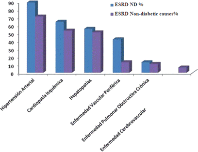 It was observed that, in the case of patients with terminal chronic renal failure due to diabetic nephropathy, those over 60 years of age, male and with a stay of six months to a year in the hemodialysis plan, predominated. The comorbidity found was mainly arterial hypertension, ischemic heart disease and Hepatopathies, in that order, in both groups.