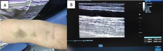 Para casos como el del paciente 1, con FAV humero basílica, este tipo de fístulas es la segunda opción para la realización de una FAV cuando la anatomía del sujeto no permite realizar una de estas en la muñeca[7]. Son técnicamente sencillas, tienen una tasa de fracaso baja y, por lo general, necesitan una segunda cirugía que precisa superficialización del trayecto venoso. Además, tienen diversos diseños según sea la configuración de las venas del paciente.