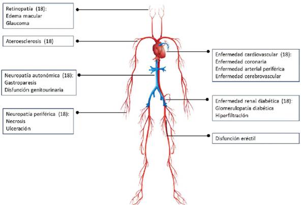 Las complicaciones vasculares de la diabetes, iniciadas en la disfunción endotelial, son manifestaciones graves de la enfermedad. La aterosclerosis sistémica y la enfermedad renal diabética son la razón principal de la menor esperanza de vida en los pacientes que padecen esta enfermedad. Aunque la disminución de la hiperglucemia retrasa la aparición de nefropatía y retinopatía, su impacto sobre la enfermedad cardiovascular es menos claro, ya que se ha observado un menor beneficio del control glucémico sobre estos cambios macro-vasculares. Así, la resistencia a la insulina y sus efectos biológicos en varios tejidos puede ser un factor más importante que la hiperglucemia en la mediación de las complicaciones aterotrombóticas. A pesar de los avances en la prevención, el diagnóstico y el tratamiento de la diabetes, las complicaciones siguen siendo un grave problema para la salud pública18.