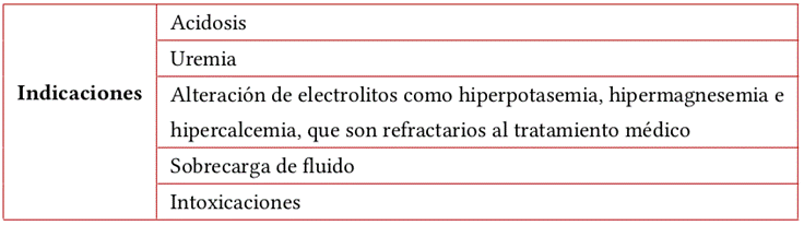 El objetivo de las TRR es disminuir los efectos adversos de la uremia en la paciente y el feto (polihidramnios, retraso en crecimiento, parto pretérmino, etc.)17 y las indicaciones principales para inicio de TRR en Emb-LRA son similares a la de para población no embarazada y se resumen en la Tabla 5.