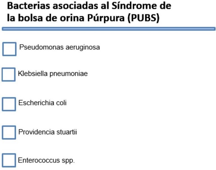 Cabe mencionar que el PUBS se puede presentar concomitantemente con infección de vías urinarias, de tal manera que al resolver la bacteriuria y al acidificar la orina luego de instaurar un tratamiento antibiótico pertinente, esta regresa a su coloración normal6; de no presentarse mejoría podría considerarse un caso de bacteriuria asintomática, en la cual el tratamiento antibiótico está indicado únicamente en grupos poblacionales especiales7, pues en la mayoría de casos solo son necesarias medidas generales de aseo, drenaje rutinario de la orina y cambio regular del dispositivo8.
