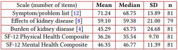 Baseline characteristics of the population are shown in Table 1, while KDQOL results and their correlation to the study variables are shown in Tables 2 and 3, respectively.