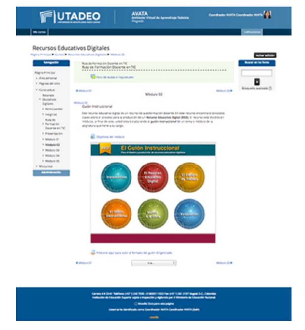Dentro de las características del perfil del docente tadeísta, contempladas en el plan de capacitación profesoral, uno de los puntos se relaciona con el dominio TIC en el proceso de enseñanza-aprendizaje; además el programa de desarrollo incluye la formación en TIC. El docente es responsable de construir su propio material didáctico; sin embargo, la mayoría de ellos no ha tenido una formación gráfico-visual y mucho menos una formación multimedial, y de hecho su vinculación no implica que deban tenerla. Las instrucciones que reciben los docentes, con respecto al aula virtual, orientan que los materiales didácticos se deben elaborar, guiados por el syllabus de la asignatura a cargo de ellos, y que el fin del aula virtual es apoyar la clase presencial.