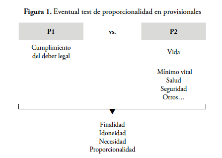 A contrario sensu, dada la especificidad transitoria de su nombramiento, se deberá realizar un test de proporcionalidad (figura 1) en cada caso concreto, que determine el nivel de afectación del núcleo esencial de cada uno de los extremos, así:
