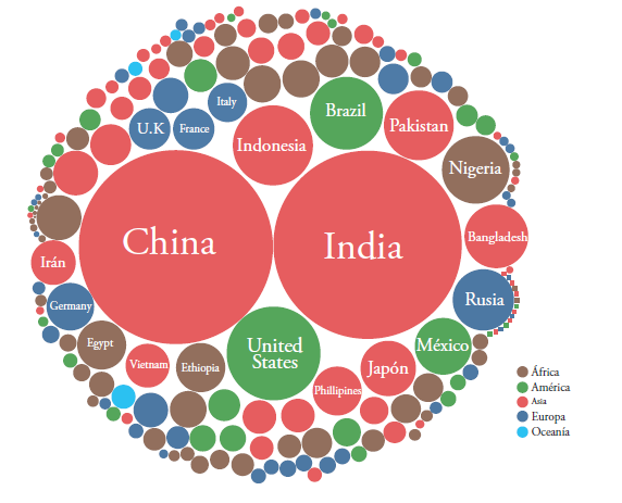 Gráficos de burbujas: se utilizan para mostrar datos en un grupo de círculos. Las dimensiones se usan para definir las burbujas individuales, y las medidas, para definir el tamaño y el color de los círculos individuales. Este gráfico se utiliza para encontrar relaciones entre variables, normalmente más de dos.