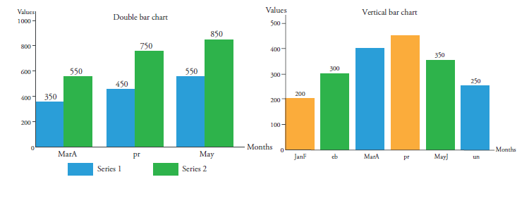 Barras comparativas verticales (dos o más series): se utilizan para comparar la magnitud de dos o más variables mediante barras que pueden ponerse juntas. Estas son una evolución de las gráficas de barras.