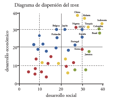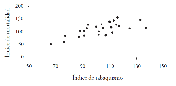 Gráficos de dispersión: se utilizan para visualizar las relaciones entre variables numéricas. La condición para utilizar este tipo de gráficos consiste en definir como máximo dos variables. En caso de que se necesite buscar la relación con una tercera variable, debe utilizarse un gráfico de burbujas.